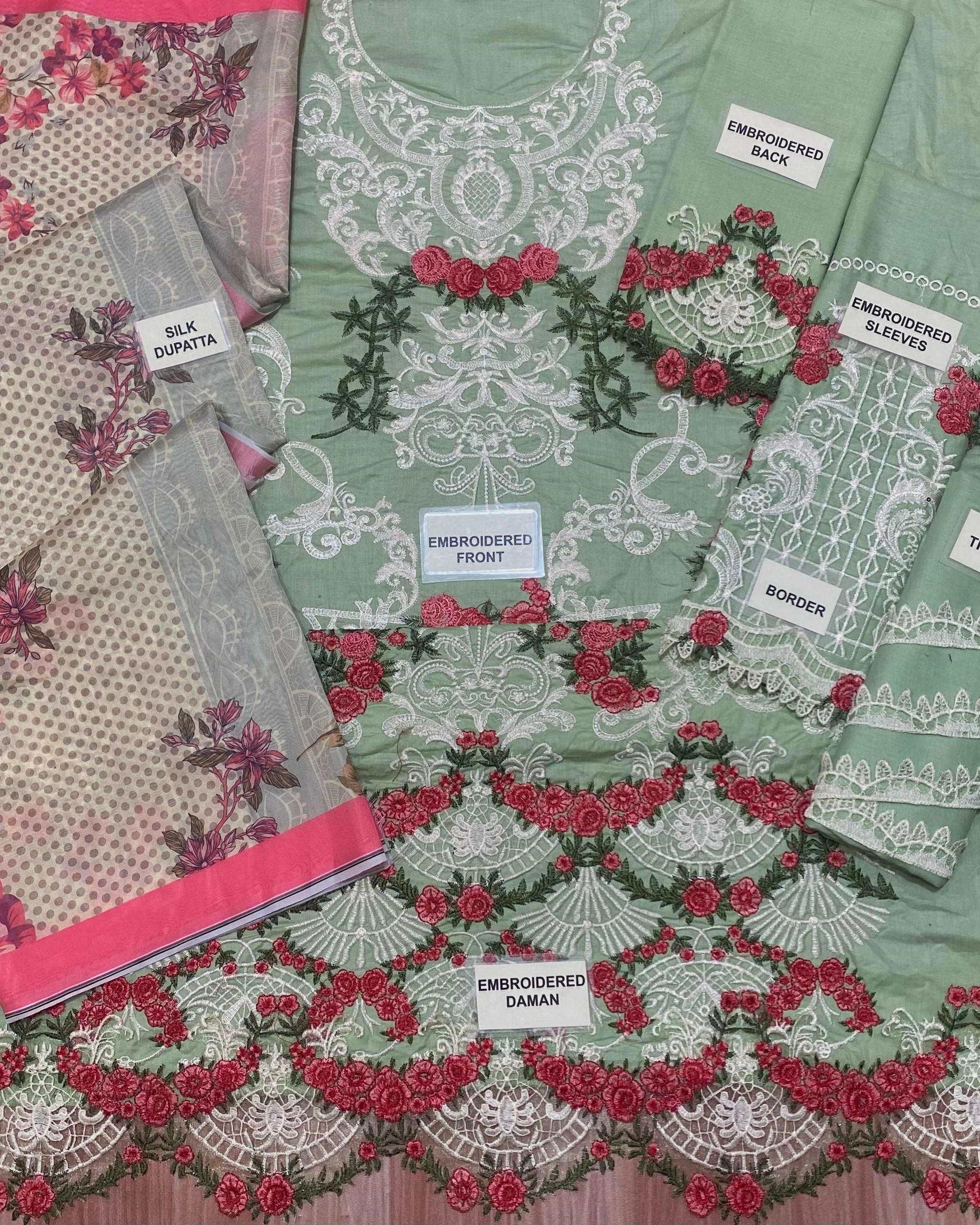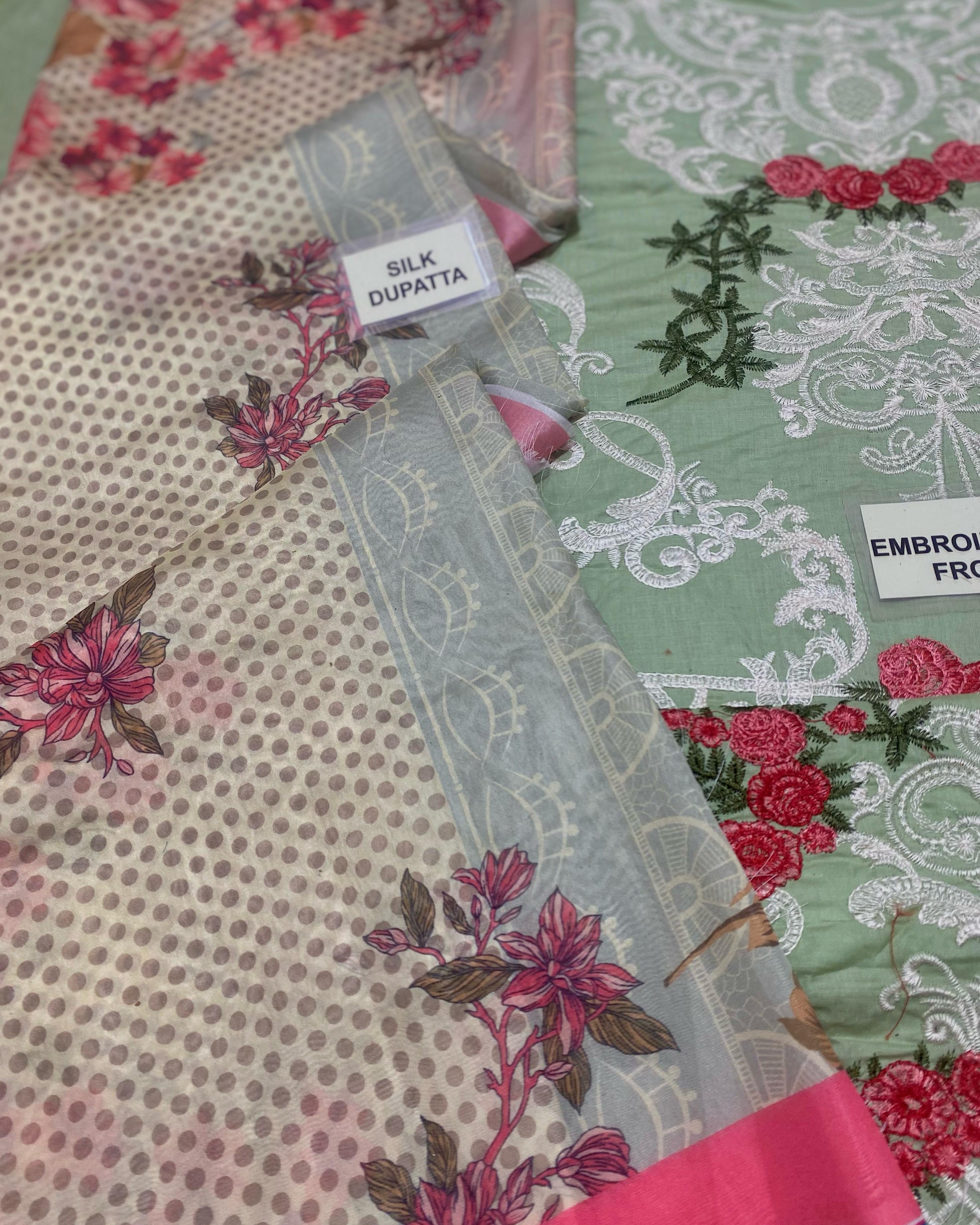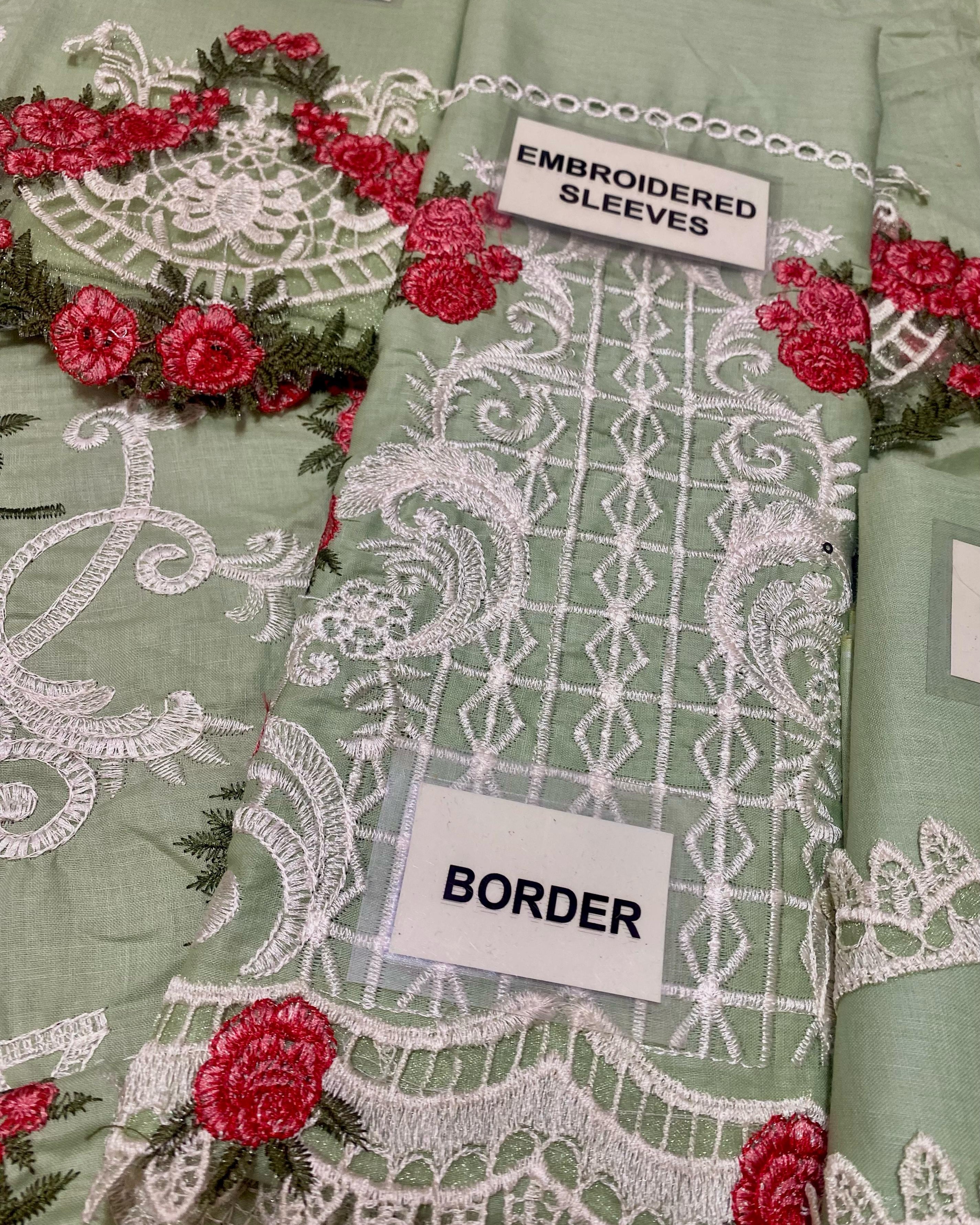✔️ Plain lawn back with embroidered border patch