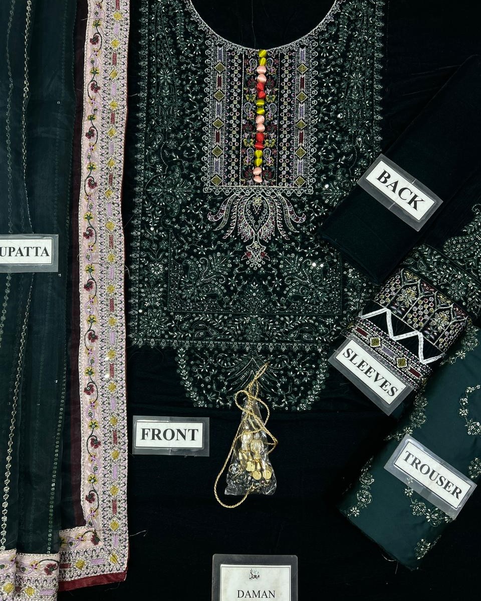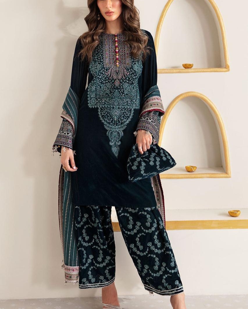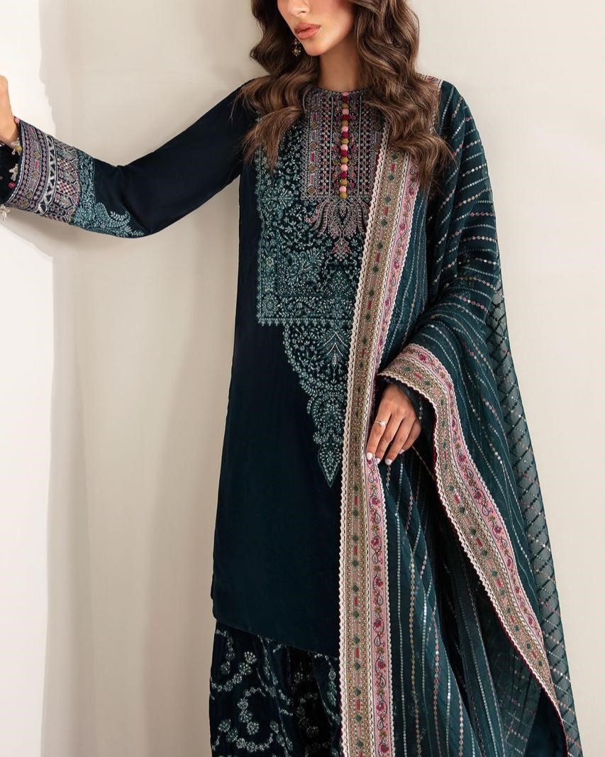 Micro Velvet Heavy Embroidered Suit with Ready-to-Wear Dupatta